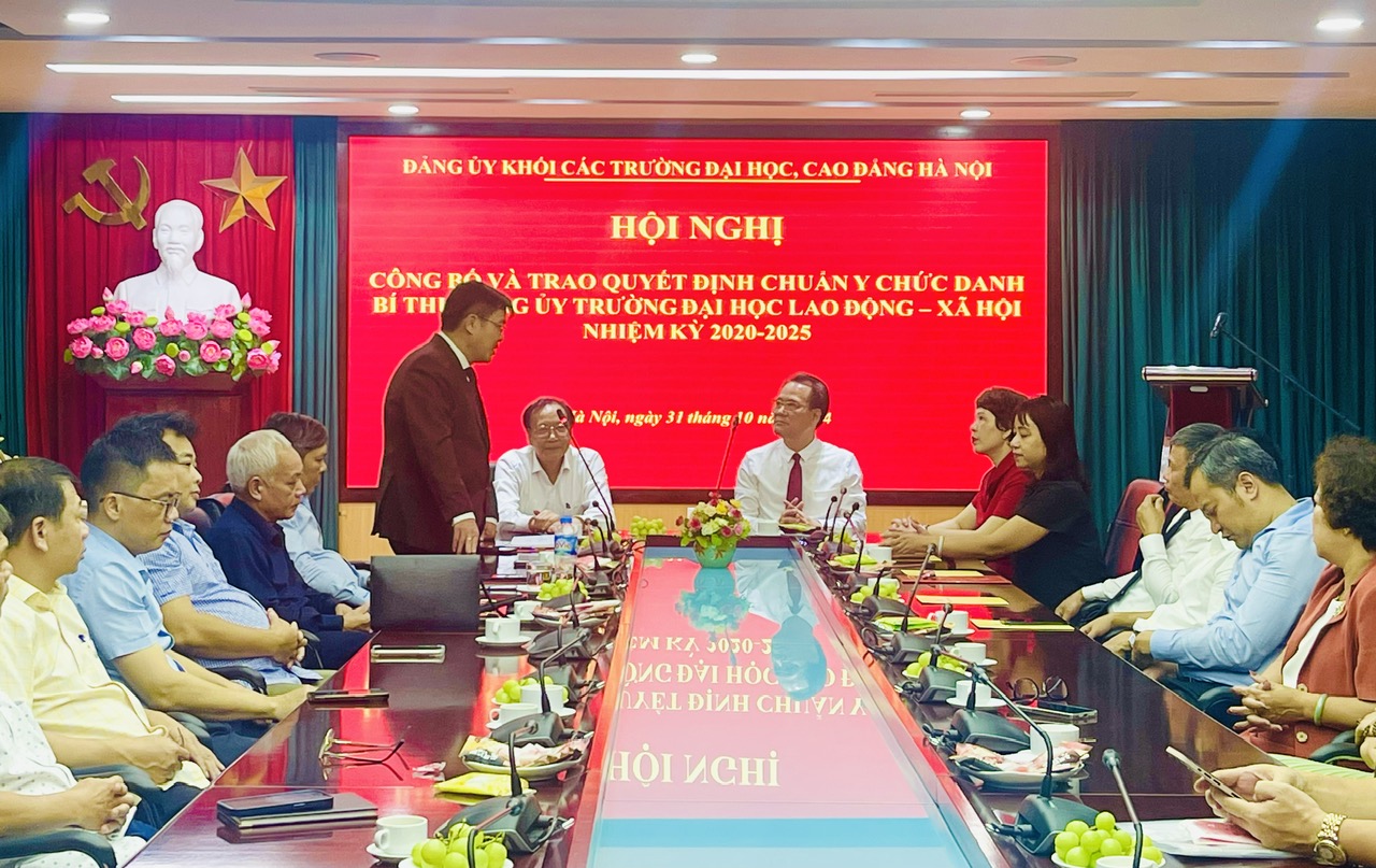 Chiều ngày 31/10/2024, Trường Đại học Lao động – Xã hội tổ chức Lễ công bố và trao Quyết định chuẩn y chức danh Bí thư Đảng ủy Trường Đại học Lao động – Xã hội nhiệm kỳ 2020 – 2025 cho PGS.TS Lê Thanh Hà - Phó Bí thư Đảng ủy, Chủ tịch Hồi đồng Trường.