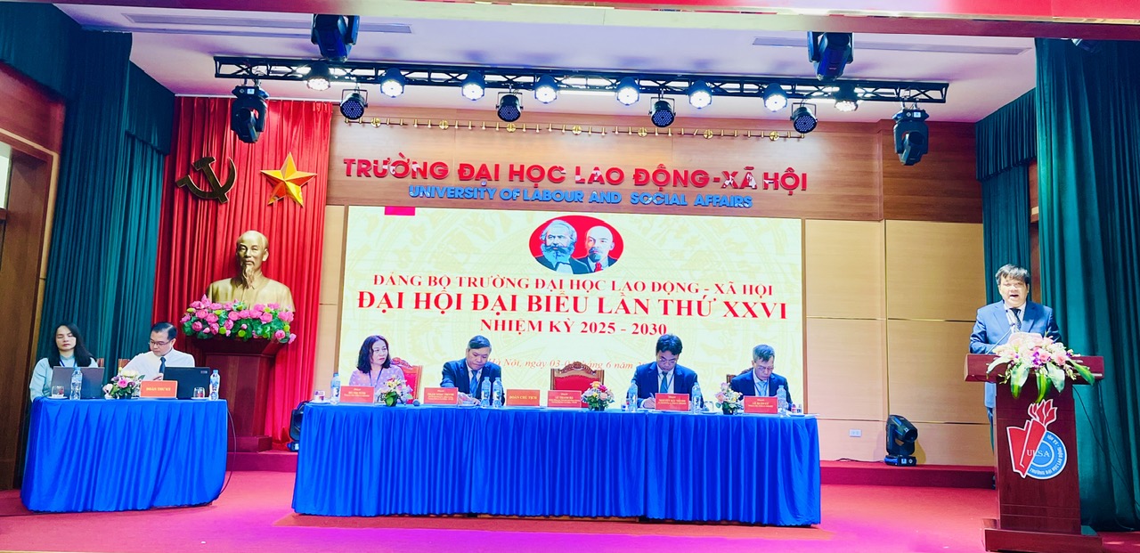 Ngày 03-04/6/2025, tại Hội trường E701, Trường Đại học Lao động – Xã hội đã trọng thể tổ chức Đại hội Đại biểu Đảng bộ lần thứ XXVI, nhiệm kỳ 2025–2030. Đại hội là sự kiện chính trị quan trọng, đánh dấu bước phát triển mới trong công tác xây dựng Đảng và định hướng chiến lược phát triển toàn diện của Nhà trường trong thời kỳ đổi mới và hội nhập.