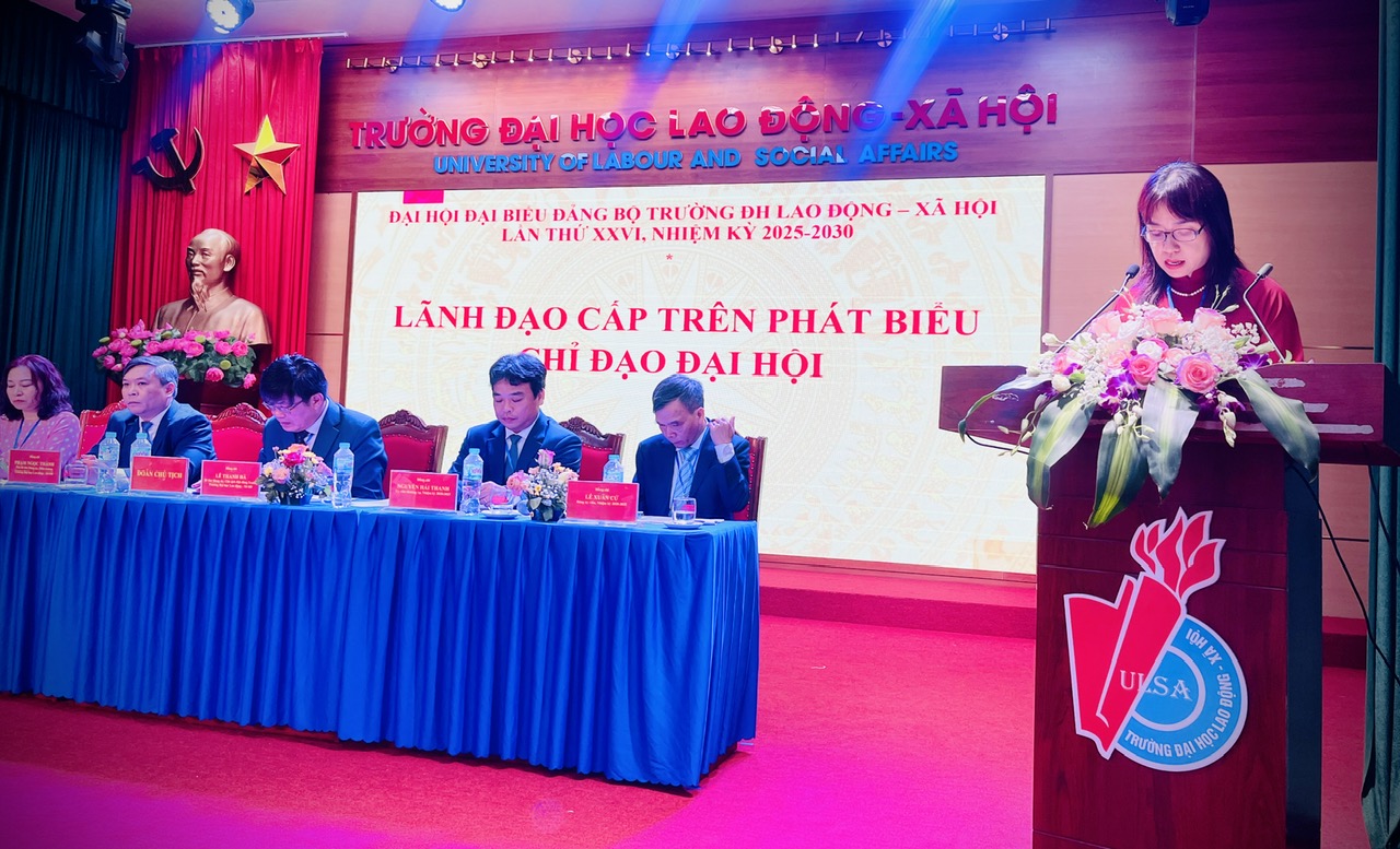 Phát biểu chỉ đạo Đại hội, đồng chí Nguyễn Vũ Bích Hiền - Phó Bí thư Đảng bộ Khối các trường đại học, cao đẳng Hà Nội ghi nhận và biểu dương những kết quả đạt được của toàn thể Đảng bộ Trường Đại học Lao động – Xã hội trong nhiệm kỳ qua. Đồng chí thống nhất với nội dung báo cáo chính trị của Ban chấp hành khóa XXV, đánh giá về nội dung trong báo cáo chính trị khá đầy đủ về công tác xây dựng Đảng, đồng thời đề nghị Đảng bộ trường cần tập trung giải quyết, tháo gỡ những khó khăn, phấn đấu thực hiện thắng lợi Nghị quyết Đại hội. Tiếp tục xây dựng quy chế hoạt động, xây dựng chương trình, kế hoạch, giải pháp thực hiện thắng lợi Nghị quyết Đại hội.