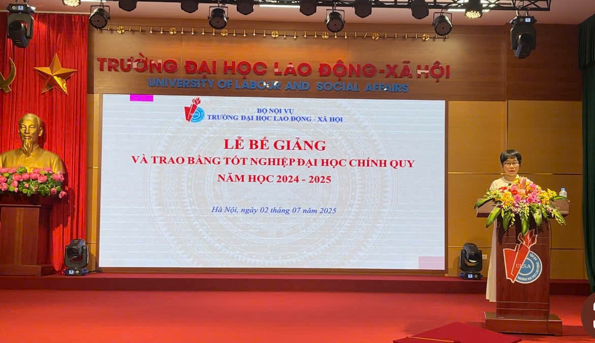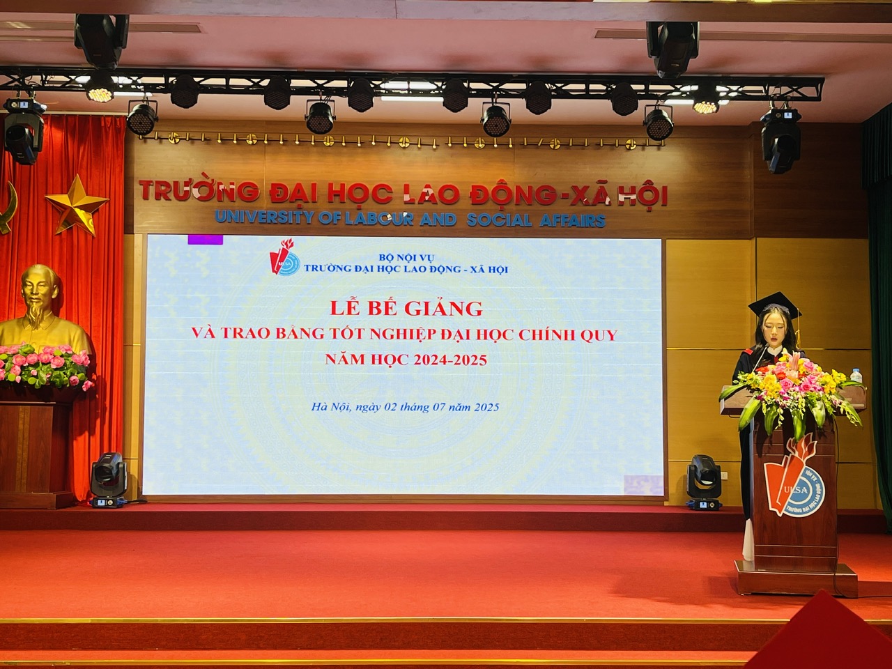 Trong không khí trang trọng và đầy cảm xúc, từ ngày 01 đến ngày 03 tháng 7 năm 2025, tại Hội trường E701 (Trụ sở chính 43 Trần Duy Hưng) Trường Đại học Lao động - Xã hội đã long trọng tổ chức Lễ Bế giảng và Trao bằng tốt nghiệp hệ đại học chính quy năm học 2024–2025 các ngành: Quản trị nhân lực; Kế toán; Công tác xã hội; Bảo hiểm; Quản trị kinh doanh; Kinh tế; Luật kinh tế; Tâm lý; Công nghệ thông tin; Hệ thống thông tin quản lý; Kiểm toán; Tài chính – Ngân hàng. Buổi lễ là dấu mốc quan trọng, khép lại hành trình học tập đầy nỗ lực của các tân cử nhân và mở ra một chặng đường mới với nhiều khát vọng và hoài bão.