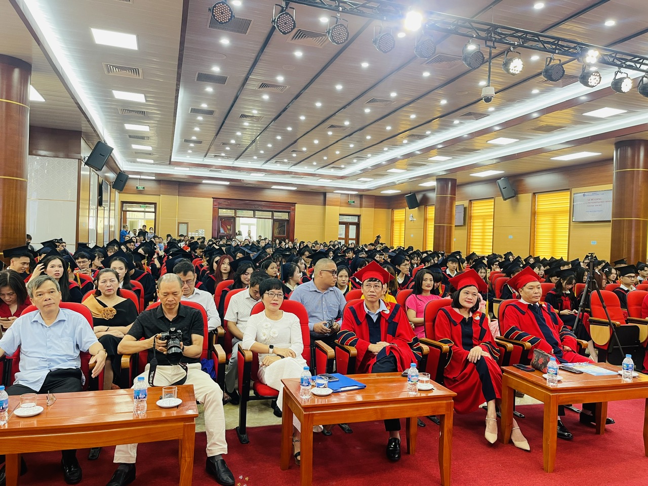 Buổi lễ có sự hiện diện của TS. Phạm Ngọc Thành – Phó Bí thư Đảng ủy, Hiệu trưởng; TS. Doãn Thị Mai Hương – ĐUV, Phó Hiệu trưởng; TS. Nguyễn Mạnh Cường – ĐUV, Phó Hiệu trưởng, lãnh đạo các đơn vị, các giảng viên; giáo viêc chủ nhiệm; lãnh đạo các khoa, phòng, ban, trung tâm trực thuộc Nhà trường; các giảng viên tham gia đào tạo đại học và đặc biệt là sự có mặt của các tân cử nhân tốt nghiệp các khóa cùng gia đình, bạn bè, người thân đến tham dự chia vui với các em.