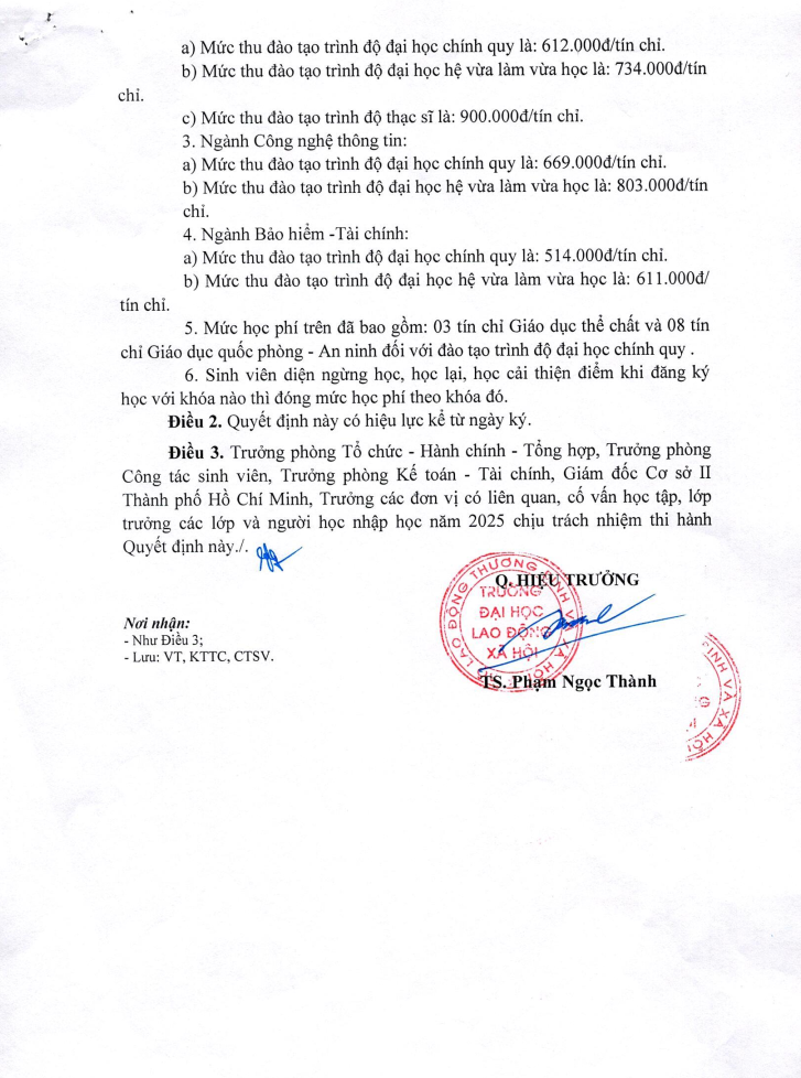 QUY ĐỊNH MỨC THU TẠM TÍNH HỌC PHÍ TOÀN KHÓA (TUYỂN SINH NĂM 2025)