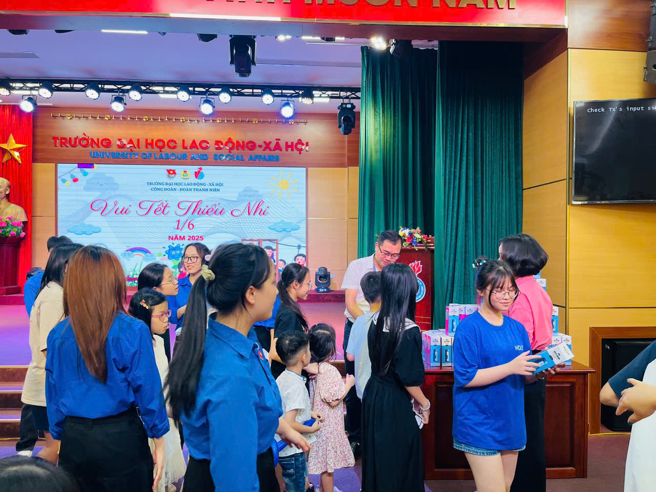 Chiều ngày 30/5/2025, tại Hội trường E701, Trường Đại học Lao động – Xã hội tổ chức chương trình gặp mặt, tặng quà cho các cháu thiếu nhi là con cán bộ, viên chức và người lao động đang công tác tại Trường. Đây là hoạt động ý nghĩa thể hiện sự quan tâm, chăm lo đời sống tinh thần đối với gia đình cán bộ, viên chức, đồng thời tạo không khí đoàn kết, gắn bó trong toàn thể Nhà trường.